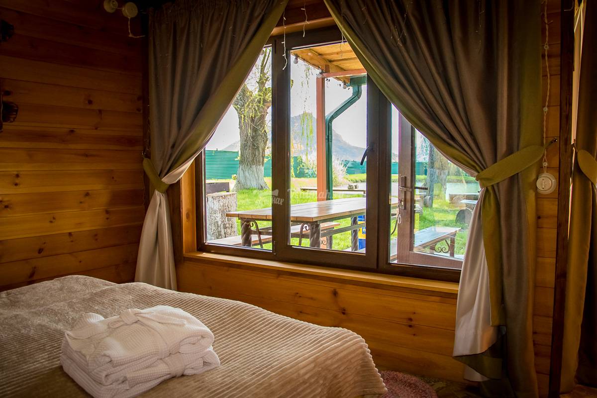 Домик со смежными номерами (стоимость указана за один номер) находится на берегу озера с прекрасным пейзажем. Стильный интерьер, душ, фирменные банные принадлежности, телевизор, стол, стулья, мини-бар с холодильником.